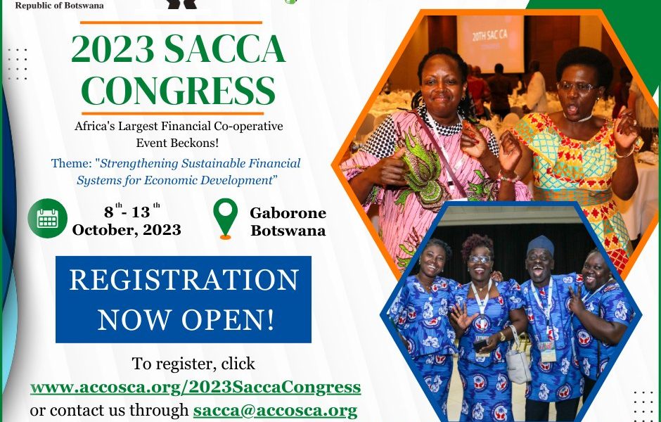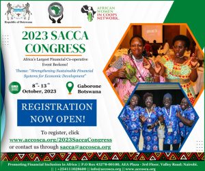 Under the theme “Strengthening Sustainable Financial Systems for Economic Development”, the 23rd SACCA Congress is happening from the 8th to 13th October in Gaborone, Botswana. Over 1000 cooperative leaders from over 30 countries spread across the globe will be attending, making SACCA Congress Africa’s Largest Annual Financial Cooperative Event.