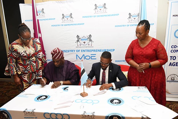The Minister of Entrepreneurship Hon. Karabo S. Gare signed the Memorandum of Agreement (MoA) between Ministry of Entrepreneurship and the International Cooperative Alliance Africa (ICAA).