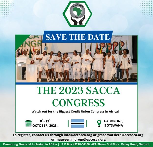 The African Confederation of Cooperatives Savings and Credit Association (ACCOSCA), in conjunction with Botswana Savings and Credit Cooperative Association (BOSCCA) with support from the Ministry of Entrepreneurship, is organising the 23rd SACCA to Congress, scheduled to take place from 8th to 13th October 2023 at Phakalane Golf Estate Hotel in Gaborone, Botswana.